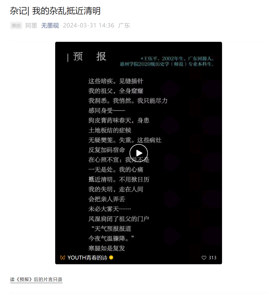 24年3月31号晚凌晨2点,我写下了这十九年来第二篇令自己泪眼的文章。